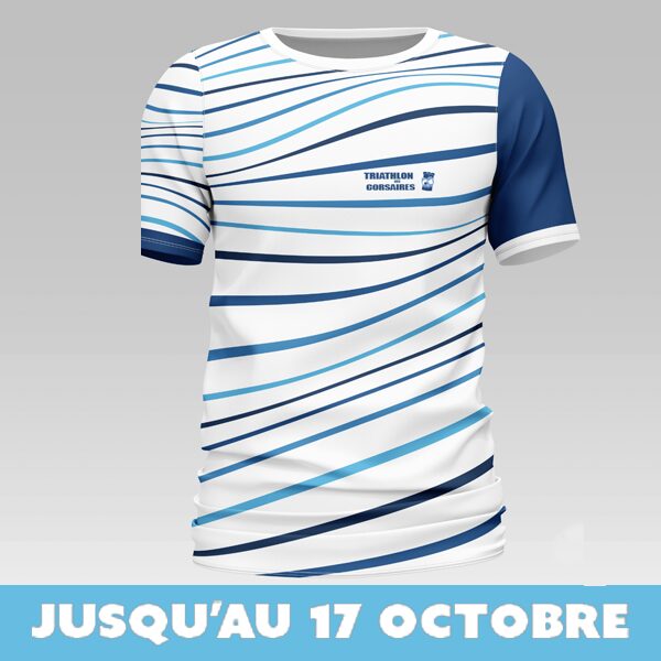 Suite au succès de ce modèle, spécialement conçu pour le triathlon des Corsaires 2025. Nous remettons en vente pour quelques jours le t shirt technique spécial Triathlon des corsaires