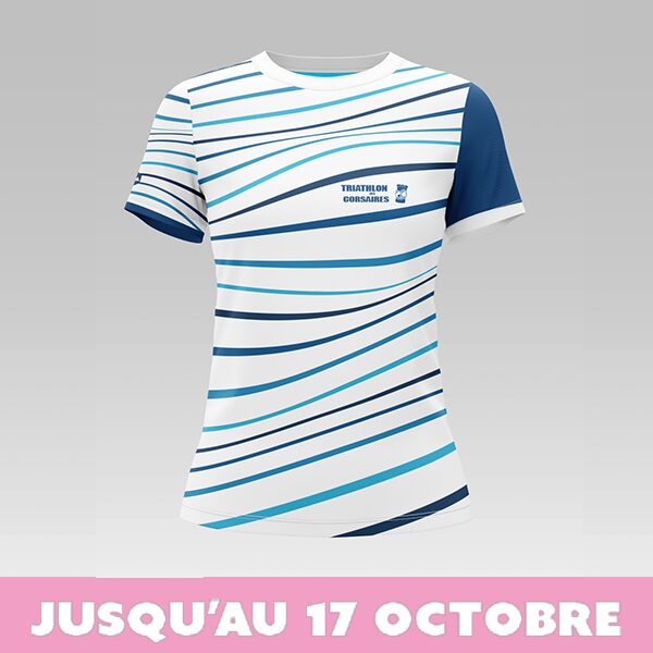 Suite au succès de ce modèle, spécialement conçu pour le triathlon des Corsaires 2025. Nous remettons en vente pour quelques jours le t shirt technique spécial Triathlon des corsaires