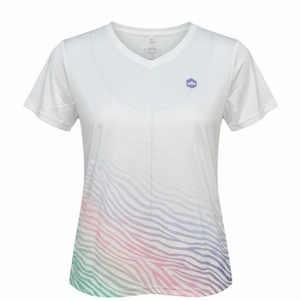 Elégance et l’originalité avec le t-shirt technique Femme Elaudy à manches courtes col v et cintré à la taille, arborant une teinte violette et une touche zébré unique en bas du t-shirt. Léger et doté d’une protection anti-UV, ce t-shirt allie style et fonctionnalité. Une subtile touche graphique dans le dos le long de la colonne ajoute une note esthétique distinctive.